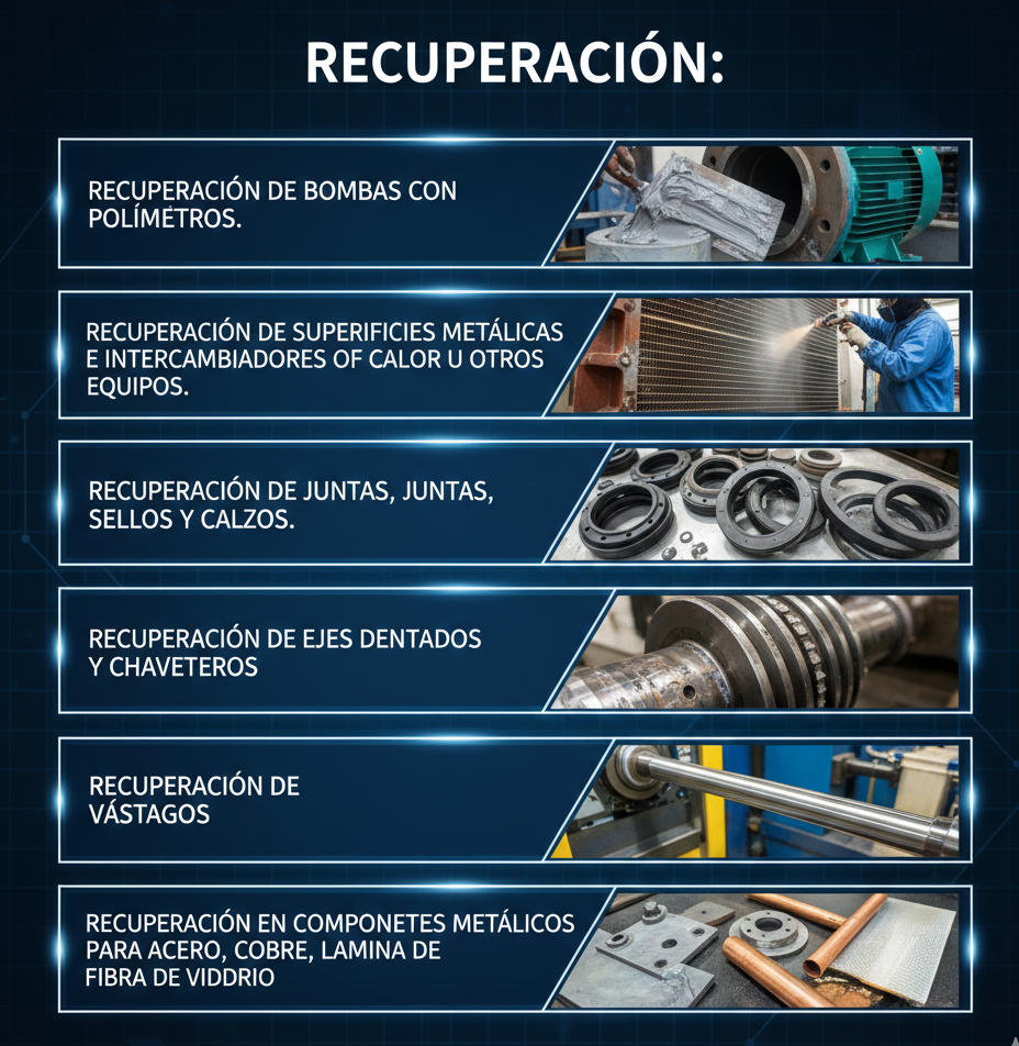 Devolvemos la vida a sus activos industriales. Somos líderes en la recuperación integral de componentes: desde bombas con tecnología de polímeros hasta ejes, vástagos y superficies multimetálicas. Restauramos la precisión técnica en acero, bronce, concreto y más, garantizando máxima durabilidad donde otros ven desperdicio. ¡Optimice su inversión recuperando lo que parecía perdido